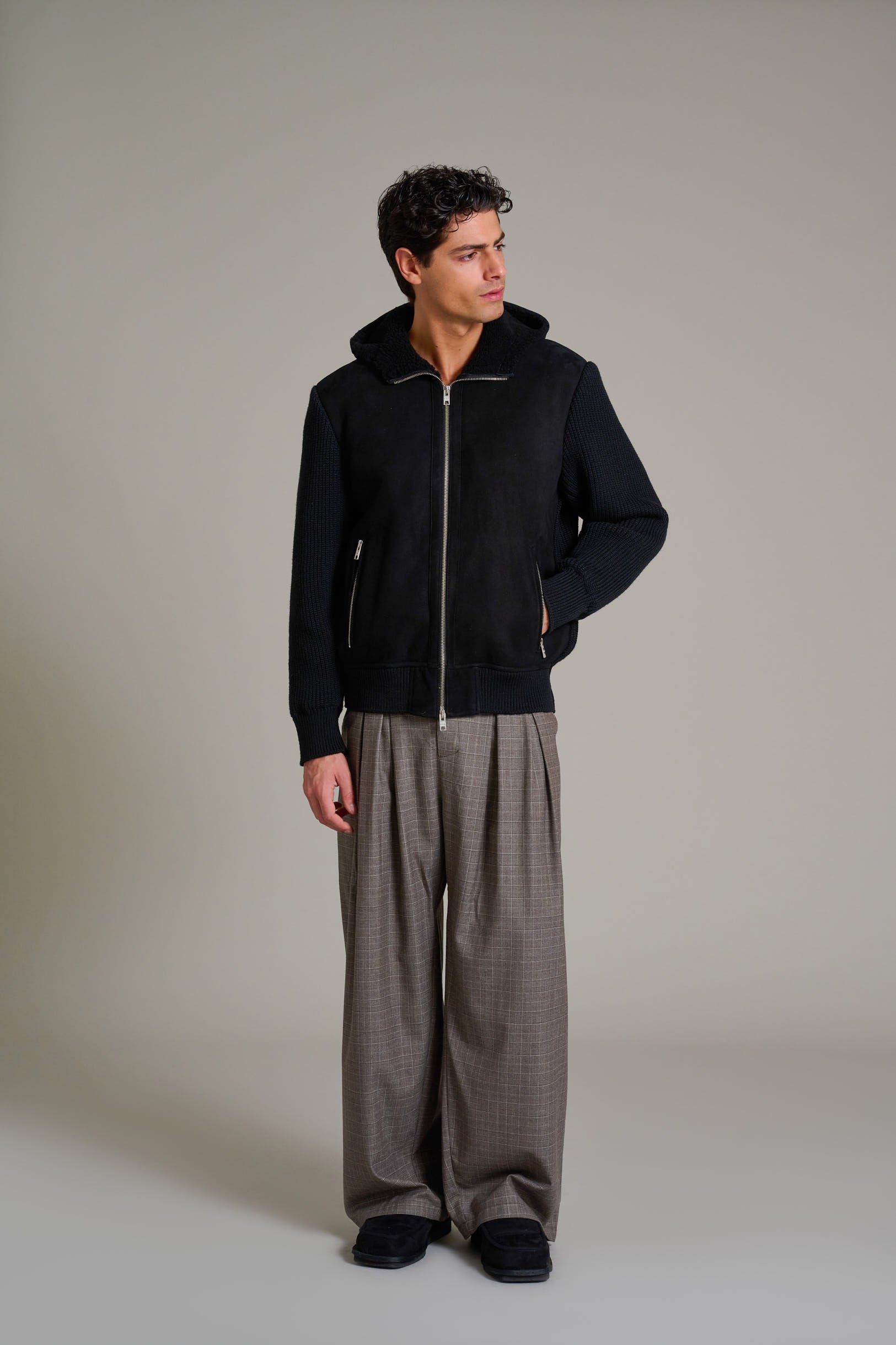 Cut with a clean, confident fit, the jacket drapes naturally over the body, preserving comfort without sacrificing elegance. The hood, crafted in matching suede and lined in shearling, enhances the piece’s winter-ready appeal while maintaining a sophisticated profile. Discreet metal zips, meticulous stitching, and a perfectly calibrated length complete the garment with an understated sense of authority.